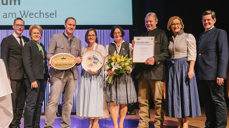 Die Familie Donhauser vom Wirtshaus "Grüner Baum" ist der neue "Top-Wirt-Sieger 2019" der "Niederösterreichischen Wirtshauskultur". "Die Gaststube präsentiert sich so, wie man es sich von einem traditionsbewussten Landgasthaus erwartet – mit dunklem Holz, stimmiger Dekoration, Wärme und Gemütlichkeit. Regionale Wildspeisen und Gerichte vom Schwein werden hier in jeder erdenklichen Art und Weise zubereitet und serviert. Darüber hinaus beweist die Familie Donhauser vom Wirtshaus 'Grüner Baum' auch einen grünen Daumen. Die Produkte aus der eigenen Landwirtschaft fließen stetig in die saisonal abwechslungsreiche Speisekarte mit ein", so die Jury.