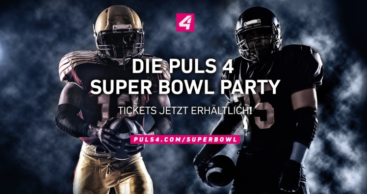 Die wohl größte Super Bowl Party Wiens, Österreichs und vielleicht sogar Europas erwartet Fans heuer wieder ausgerichtet von Puls 4 in der Erste Arena (ehemalige Albert-Schultz-Halle) im 22. Bezirk. Mit Platz für über 4.600 NFL-Fans und sechs überdimensionalen Videowalls mit jeweils ca. 55 Quadratmetern Fläche wird das Sport-Highlight in einer fünfstündigen TV-Produktion aufbereitet. Ein All-You-Can-Eat-And-Drink-Special lässt garantiert niemanden hungern und ein umfangreiches Rahmenprogramm mit Live-Acts soll für Unterhaltung nonstop sorgen. Kostenpunkt: ab 49 Euro (ermäßigt) und 69 Euro (regulär), Start ist um 21 Uhr.