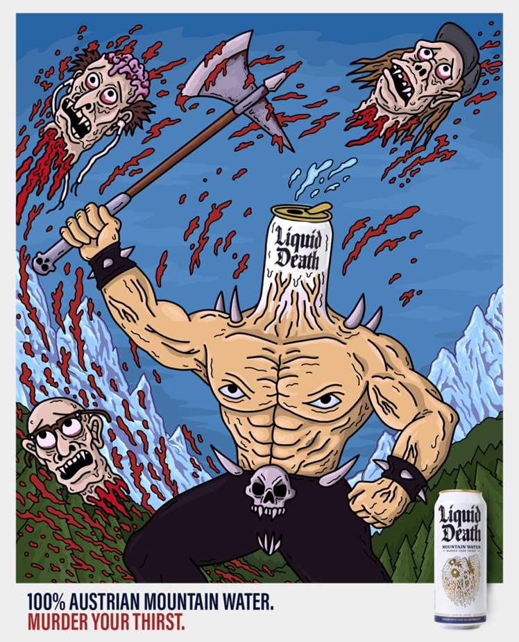 Bei "Liquid Death" handle es sich laut Angaben der Hersteller um die einzige nicht sprudelnde Wassermarke, die in Aluminiumdosen abgefüllt wird. Das Produktdesign sei "der erwachsenen Welt des Craft Beer", also dem einer Bierdose nachempfunden. und richtet sich sowohl im Look als auch in seiner Message direkt an die junge Generation, die bewusster lebt, aber nach wie vor auf explosive und unkoventionelle Werbebotschaften anspricht.