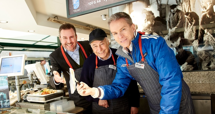 Haider und Pollak stellten sich mit Alexander Pietsch, dem Geschäftsführer von Nordsee Österreich, hinter der Theke der Nordsee Filiale am Wiener Naschmarkt und krempelten die Ärmel hoch um gemeinsam höchstpersönlich die saisonalen Nordsee Heringssalate zu verkaufen. Und das für eine wohltätige Sache: der gesamte Tagesumsatz des Standortes in Höhe von 4.000 Euro kommt dem von Haider geführten Verein "Unser Kind" zu Gute.