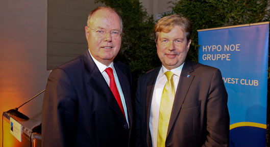 Spitzenpolitiker Peer Steinbrück diskutierte im Novomatic Forum mit Hypo NOE-Generaldirektor Peter Harold über Verschiebungen im globalen Machtgefüge sowie deren Auswirkungen auf die EU. Vor rund 100 geladenen Gästen konstatierte der Abgeordnete des deutschen Bundestages und ehemaliger deutscher Finanzminister eine Veränderung der politischen und ökonomischen Koordinaten. "Wenn der Euro scheitern würde, würde die bisher weit fortgeschrittene Integration Europas um 20 Jahre zurückgeworfen werden", so Steinbrück. Europa müsse daher all seine Kräfte mobilisieren und gemeinsam vorgehen.