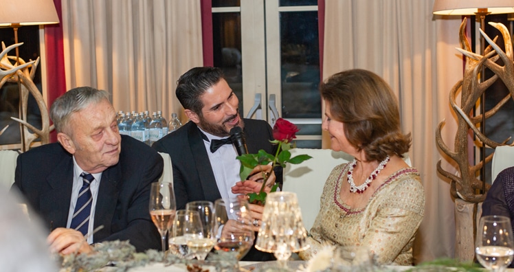 "Wir sind sehr stolz, die FIS Gala in unserem Hause ausgerichtet haben zu dürfen und hoffen, den Gästen einen traumhaften Abend bei uns bereitet zu haben!", freut sich Elisabeth Gürtler. Bei dem glanzvollen Dinner war neben kulinarischen auch für künstlerische und kulturelle Hochgenüsse gesorgt: Gregor Glanz gab seinen WM-Song "Time For Heroes" zum besten bevor der Astoria-Botschafter und Star-Bariton Clemens Unterreiner mit seiner gefühlvollen Darbietung von "Schenkt man sich Rosen in Tirol" zum royalen Rosenkavalier wurde. Der Sänger kniete nach seiner Darbietung vor der Monarchin nieder und überreichte ihr, ganz im Sinne des musikalischen Titels, eine langstielige rote Rose.