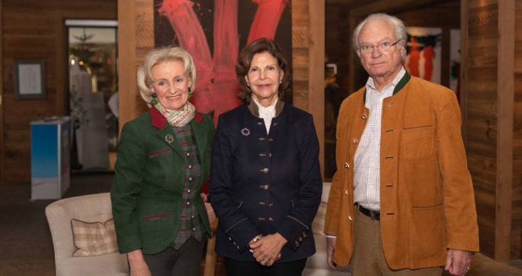 Sportliche Großereignisse wirken auch immer magnetisch auf Promis und VIPs aller Art, doch am vergangenen Freitag fanden sich bei Kaiserwetter ganz besondere Gäste von Adel im Hotel Astoria in Seefeld ein: Königin Silvia und König Carl Gustaf von Schweden beehrten den Skizirkus und dinierten auf Einladung von Hausherrin Elisabeth Gürtler in Gesellschaft von weiteren Staatsoberhäuptern, Sportlern und Funktionären. Das königliche Paar schmauste Seite an Seite mit 105 hohen Häuptern beim 4-Gänge Abendmenü des haubengekrönten Küchenteams des Astoria Resorts.