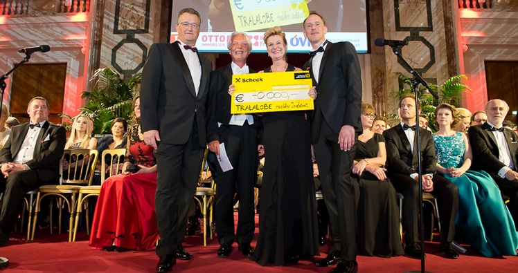 Durch den sensationellen Kartenverkauf und die großzügig aufrundende Raiffeisenbank Baden, vertreten durch Erwin Atzmüller, konnte Ballinitiator Reinhard Einwaller bei der Eröffnung des Balls einen Scheck im Wert von sagenhaften 70.000 Euro an Michaela Klein. Die Miteigentümerin der Firma Almdudler ist nicht nur Gründerin sondern auch Präsidentin des Vereines Tralalobe.