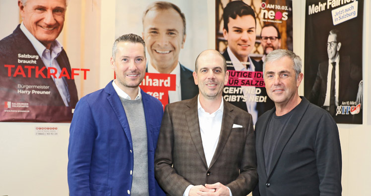 Im Kontrast dazu konzentriert sich Bürgermeister-Stellvertreter Bernhard Auinger auf ein durchgehendes Sujet mit einer klaren Aussage: "Salzburg im Herzen". Hajek: "Er signalisiert damit, dass alle Anliegen der Stadt und der Menschen in seinem Herzen leben. Dynamik, Optimismus und Kraft dominieren - hier tritt eine neue junge Generation an. Die Logos der Parteien treten in den Hintergrund und sind fast unsichtbar. Das gilt für ÖVP und SPÖ."
