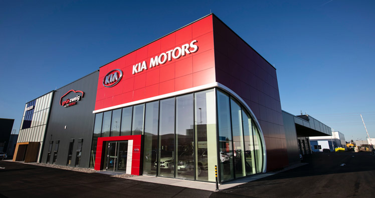 Auf 8.300 Quadratmetern wurde ein komplett neues Autohaus für die Marken Kia und Volvo errichtet. Der Kia-Schauraum ist der erste Full Red Cube der koreanischen Automarke in Österreich. Dazu kommen moderne Werkstätten und ein Reifenturm für 8.000 Räder. "Es freut mich besonders, dass wir mit dem Neubau auch Vorreiter im Autohaus-Design für die Marke sind", sagt Philipp Grünzweig, Mitglied der Geschäftsführung und markenverantwortlich für Kia. "Das spiegelt auch die enorme Entwicklung wider, die Kia in den letzten Jahren beim Design gemacht hat."