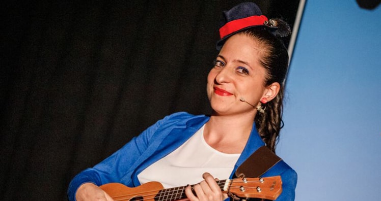 Die Tochter eines Griechen und einer Wienerin begeisterte ihr Publikum mit ihrem temperamentvollen Wesen und ihrem musikalischen Talent und nahm die Gäste mit auf die Suche nach ihrem gespaltenen Selbst. Musikalisch und sprachwitzig analysierte sie die griechischen Götter, das unterschiedliche Fressverhalten der Kulturen und den Tod, der definitiv ein Wiener ist. Das emotionale Highlight fand dann am Ende des Programms statt. Für die Zugabe holte sie sich ihren Lebenspartner Georg auf die Bühne und machte ihm vor versammeltem Publikum einen Heiratsantrag, den er mit einem entschiedenen "Ja!" annahm.