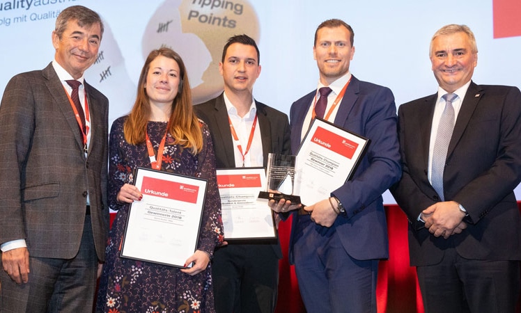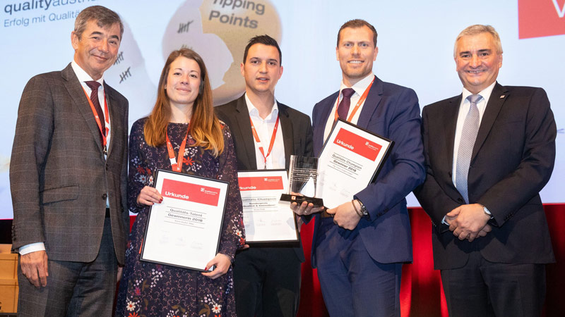 Unter allen Bewerbern für den Wettbewerb "Qualitäts-Champion 2018" setzte sich Hans-Jürgen Linzer, Head of Process Management bei FunderMax GmbH durch. Der 38-jährige überzeugte durch eine "Erfolgsgeschichte" mit einer großen innerbetrieblichen Breitenwirkung in einem größeren Produktionsunternehmen, das auf Basis langjährig eingefahrener Strukturen an seine organisatorischen Grenzen hinsichtlich Effizienzsteigerung und Flexibilität gestoßen war. Mit völlig neuen prozessorientierten Ansätzen erzielte er eine sprunghafte Leistungssteigerung ohne dabei gleichzeitig die Personalkosten zu erhöhen, so die Begründung der Jury.
