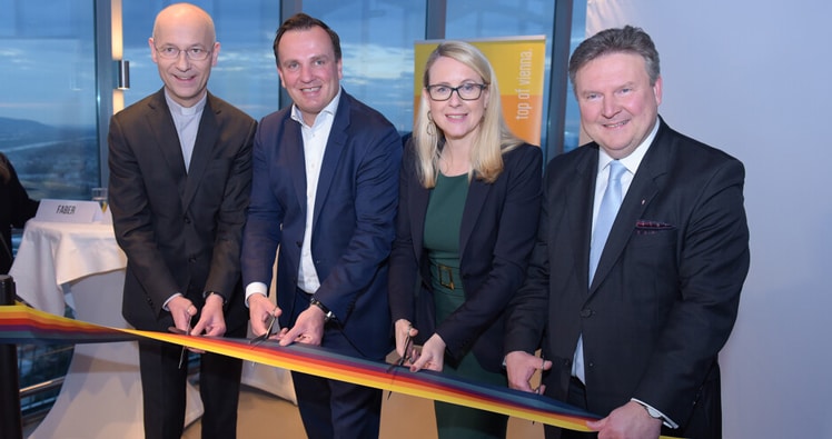 Über ein Jahr wurden umfangreiche Umbau- und Erweiterungsarbeiten an einem von Wiens prominentesten Wahrzeichen vorgenommen, am Dienstagabend war es dann nach erfolgreicher Fertigstellung endlich soweit: in einer feierlichen Eröffnungszeremonie und Pressekonferenz durchschnitten Paul Blaguss, Miteigentümer des Donauturms, Margarete Schramböck, Bundesministerin für Digitalisierung und Wirtschaftsstandort, Bürgermeister Michael Ludwig offiziell das Band zum "neuen" Donauturm nach der Segnung durch Dompfarrer Toni Faber.