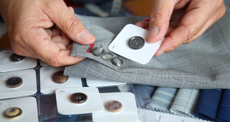 Designoptionen wie die Art des Revers, der Seiten- und Billettaschen bis hin zur Farbe der Kontrastnähte stehen zur Verfügung – lhrer Kreativität sind keine Grenzen gesetzt. Wenn es noch individueller sein soll, macht lhr persönliches Monogramm lhren Anzug einzigartig.