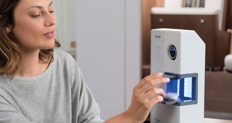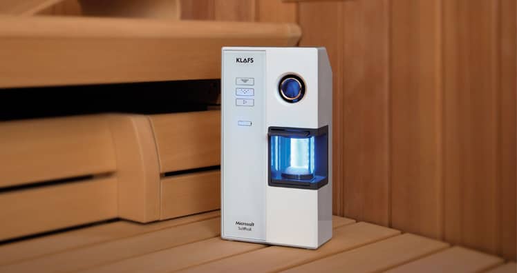 Klein, handlich: Der neue SaltProX von KLAFS ist das erste Microsalt-Gerät speziell für private Kunden. Diese einzigartige und patentierte Technologie für private Haushalte.