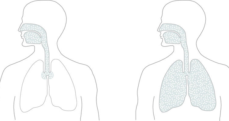 Anders wie bei herkömmlichen Geräten , erreichen die feinen Salzpartikel des SaltProX die äußersten Lungenbläschen.