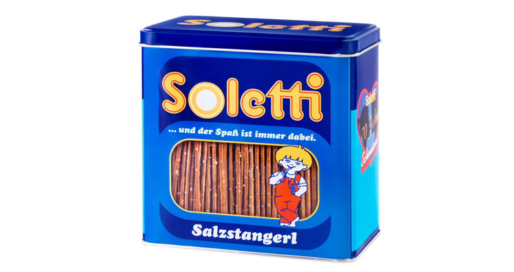 Der Star unter den Produkten in Feldbach ist natürlich das weltberühmte Soletti Salzstangerl. Das meistgekaufte Snackprodukt am österreichischen Markt wird mit 100% österreichischem Mehl und 100% österreichischem Steinsalz mittels einer einzigartigen Technologie hergestellt und ist zudem palmölfrei. Passend zum Jubiläum erstrahlt die beliebte Soletti Vorratsdose in einem Retro-Packungsdesign und ist ab sofort im Handel im tragbaren Vorratspack erhältlich.