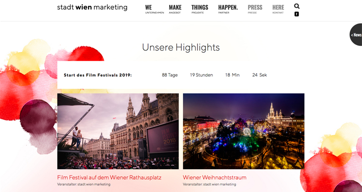 Als verbindendes Element zwischen der neuen Werbelinie und dem neuen Webauftritt wurde der Hashtag #meinEventfindetStadt eingerichtet, der zu einer aktiven Interaktion auf der Website und den sozialen Kanälen der stadt wien marketing aufruft. Es ist die Einladung an alle WienerInnen und Gäste der Stadt, ihre schönsten Momente bei Wiener Events festzuhalten und mit anderen zu teilen.