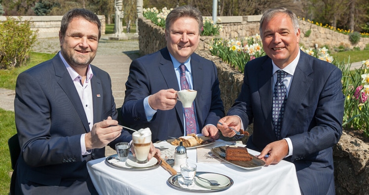 Standesgemäßer Auftakt für die Schanigarten-Saison: Am Montag luden Kaffeehaus-Obmann Wolfgang Binder, Wirtschaftskammer Wien Präsident Walter Ruck und Bürgermeister Michael Ludwig bei schönstem Kaiserwetter in einen Wiener Schanigarten mitten im Grünen ein: rund 3.500 Gast- und Schanigärten gibt es in Wien und heuer war es das kürzlich eröffnete Donaucafé am Fuße des Donauturms, das zum Schauplatz des Saisonauftakts der Wiener Schanigartenbetreiber erkoren wurde. Zeitgleich stellte der offizielle Start des neuen emissionsfreien Gratis-E-Shuttle-Dienstes zwischen Donauturm und U-Bahn die schnelle und umwelfreundliche Anbindung sicher.