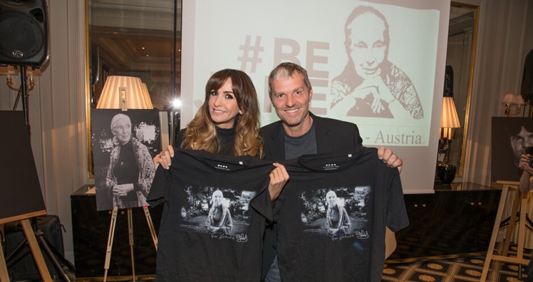 Doch Mrs. Goodall wäre wohl nicht Sie selbst, hätte Sie ihren Freudentag nicht auch ganz in den Dienst der guten Sache und ihrer Herzensangelegenheit gestellt: so war es wohl ganz in ihrem Sinne, dass ihre Ehrenbotschafter, Starfotograf Manfred und seine Gattin Nelly Baumann, diesen besonderen Geburtstag zum Anlass nahmen, zu einer großen Geburtstagsfeier Goodalls zu Ehren ins Hotel Bristol zu laden.