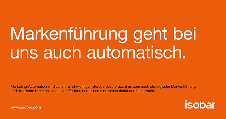 Eine zunehmend datengetriebene Werbewelt verändert die Anforderungen an Kreation. isobar Wien wird die globale Ausrichtung des isobar Netzwerks als Vorreiter in der digitalen Transformation übernehmen. Man setzt auch weiterhin auf Kreativität und Technologie, wird jedoch besonders in den Bereich Marketing-Automatisierung investieren. isobar Experten werden Kunden bei der digitalen Transformation beraten und für jene Marketing-Cloud Lösungen wie Salesforce oder Adobe bereitstellen. isobar ist globaler Platinum Partner von Salesforce und Adobe. Durch kreative Umsetzungen werden diese Marketing-Automations-Lösungen aber erst zum Leben erweckt. isobar ist der Single Point of Contact für Marken, die über die ganze User Journey erlebbar sein wollen.