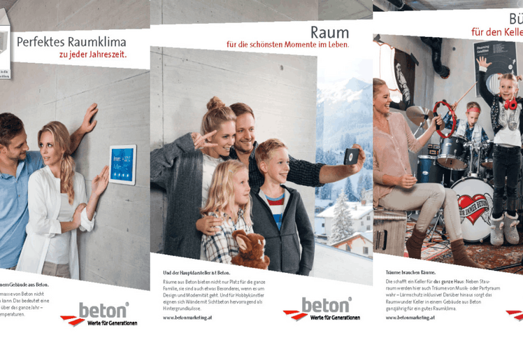 Das BMÖ, ein Zusammenschluss von Verbänden der österreichischen Zement-, Betonfertigteil-, Transportbeton- und Zusatzmittelhersteller.die die Öffentlichkeit, vom Endkunden bis zum ganzen Bundesland, über den vielseitigen Baustoff informieren will, der auf den ersten Blick oder gar beim ersten Gedanken selten – weshalb Sensibilisierung, Bewusstseinsbildung, Markenbekanntheit, Imageaufbau, Wertevermittlung und Einstellungsveränderung rund um den vielfältig zum Einsatz kommenden Baustoff Beton ganz vorne in den Kampagnenkonzepten stehen.