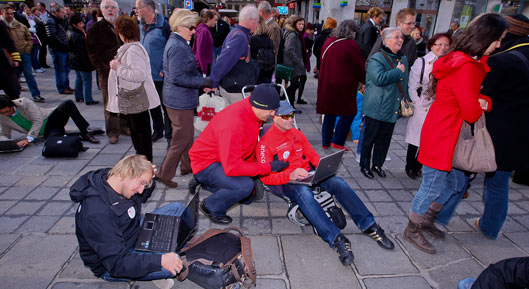 Microsoft Österreich hat zu einem Viral Marketing Flashmob am Stephansplatz aufgerufen. Hintergrund der Aktion war die Produktion eines neuen Videos zur Ansprache von Neukunden. Die Flashmobber erstarrten pünktlich um 15 Uhr für fünf Minuten mit ihrem PC bzw. Windowsphone in einer markanten Arbeitspose um die neu gewonnene Unabhängigkeit von Zeit, Arbeitsgerät und Ort zu demonstrieren, gemäß dem Motto "Arbeiten wo ich will".