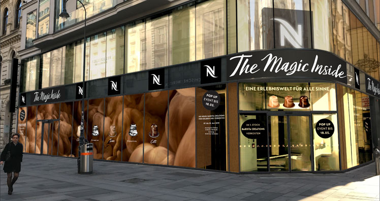 "In der interaktiven Erlebniswelt 'The Magic Inside' begleiten Besucher den Kaffee auf seiner Reise von der Bohne in die Tasse – von Kaffee-Anbaugebieten bis hin zu Aromastationen. Eine Audio-Untermalung erzählt die Geschichte des Kaffees und der Milch und überrascht mit spannenden Fakten rund um das Lieblingsgetränk der Österreicher", so Nespresso in einer Pressemitteilung.