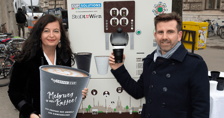"No life before coffee" ist für Kaffeeliebhaber zum internationalen Motto geworden – gerade in der für ihre Kaffee(haus)-Kultur bekannten Bundeshauptstadt Wien ist das flüssige, braune Gold nicht mehr aus dem Alltag wegzudenken. Passenderweise ist es auch genau hier, wo ein neues, bislang europaweit einzigartiges Mehrwegsystem für Kaffeebecher gerade seinen Anfang nimmt. Unter dem Motto "Mehrweg is mei Kaffee!" will die Firma "Cup Solutions" mit einem innovativen Mehrwegbecher System für Kaffee neue Maßstäbe setzten und bis zu einer Million Wegwerfbecher einsparen.