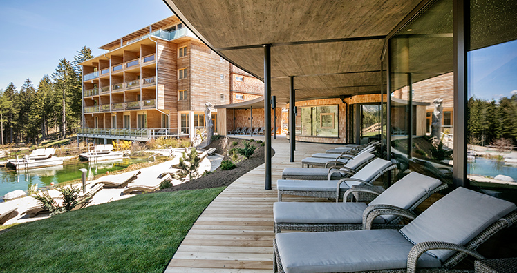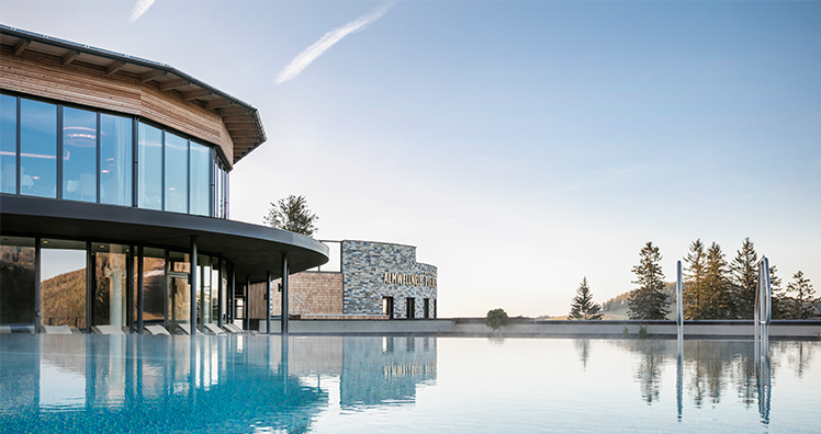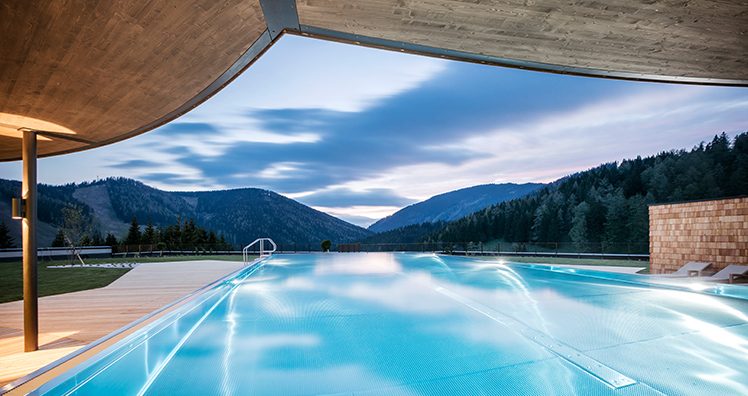 Das Highlight ist der beheizte Infinitypool mit 20 Meter Länge und 8 Meter Breite. Ebenso garantieren ein zweiter Außenwhirlpool und eine Panoramasauna beste Ausblicke. Zusätzliche Ruheräume und Liegeflächen sowie eine Wellnesslounge sorgen für noch mehr Platz und eine entspannende Wohlfühlatmosphäre.