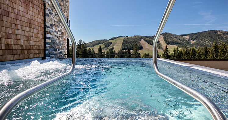 Frisch eingelassen und eingeheizt – Infinitypool, Whirlpool und Panoramasauna