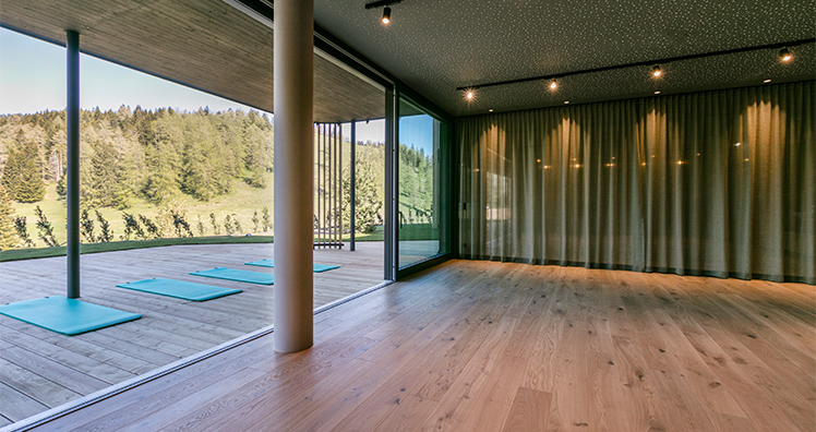 Im neuen Yoga- & Aktivraum, welcher nicht nur mit uneingeschränkter Fernsicht sondern auch mit eigener Terrasse punktet, werden die Übungen an der frischen Almluft zum unvergesslichen Erlebnis. Effektive Trainingseinheiten werden ebenso im neuen Fitness-Studio mit zahlreichen, qualitativ hochwertigen Geräten der Marke Technogym möglich.
