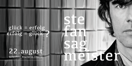 Dieser Inspirationseffekt in gewohnter Sagmeister-Ästhetik wird sicherlich auch am Abend des 22. August im Europahaus Mayrhofen eintreten. Auszüge aus „The Happy Film“ gepaart mit persönlichen Einblicken versprechen diesen Abend zu einem außerordentlichen Erlebnis werden zu lassen.