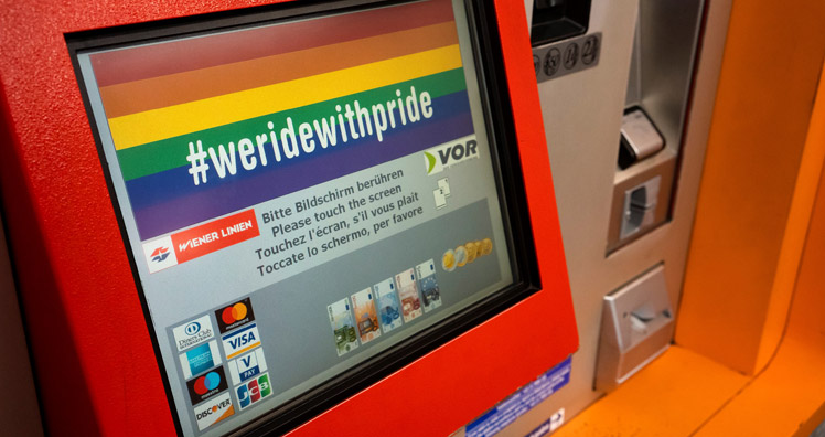 Die Wiener Bims sind noch bis 23. Juni mit Regenbogen-Fähnchen beflaggt, 24-, 48- und 72-Stunden-Tickets sowie Wochenkarten gibt es derzeit als Special Edition im Regenbogendesign, Themenplakate – wie "Bei dieser Haltestelle gibt es keinen Platz für Diskriminierung" – bringen einen farbigen Akzent in Stationen.