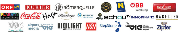 A.Y. Social OG. • Agentur Spitzfindig • agentur werbereich gmbh • Alexandra Kolwig/Art Direktion & Design Studio • Artattack Werbeagentur • blond.communication GmbH • Cayenne Marketingagentur GmbH • contemas GmbH & Co KG • CRAVING BRANDEXPERIENCE • Dominici Werbeagentur GmbH • Edition Lammerhuber/Lammerhuber KG • Ehrenberger & Schwarz OG • Exprovision GmbH • ghost.company Werbeagentur Michael Mehler e.U. • gugler GmbH • Heavystudios Ltd. • Helmut Kindlinger – Atelier für feine Grafik und gute Werbung • informativ! Punktgenaue kommunikation • kubator GmbH • Leitidee e.U. • Lumsden & Friends KG • Marian & Co GmbH • Marketing St. Pölten GmbH • Marzek Etiketten + Packaging • MBIT Solution GmbH • mgf // Marketing & Kommunikation • MP Media GmbH • pixart • Point of View GmbH • Rezac High Power Projection/Messearchitektur e.U. • Scherz-Kogelbauer GmbH • sterngasse* • Strass-Wasserlof e.U. Public Relations • Studio Ideenladen • themata/kommunikation GmbH • WAGNERUNDPARTNER • Werbeagentur Helmreich
