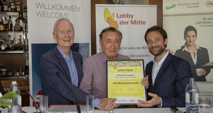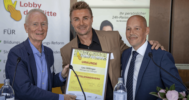 Winzer Leo Hillinger, Einkaufszentrum-Chef Richard Lugner und Rabmer-Gruppe-Eignerin Ulrike Rabmer-Koller wurden kürzlich von der Plattform "Lobby der Mitte" für ihre große Innovationskraft, ihren besonderen Mut und ihr echtes Engagement für Nachwuchs sowie faire Rahmenbedingungen für den Mittelstand als Mittelstandsheros und Mittelstandsheroine geehrt.