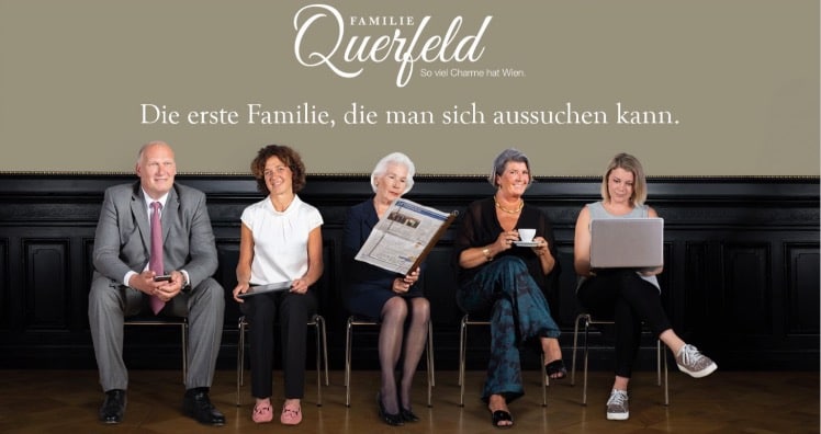 Aus Fokusgruppen und zahlreichen Interviews kristallisierte sich der Markenkern heraus: Die Familie Querfeld. Die erste Familie, die sie man sich aussuchen kann". Mit den 3 Werten „zuvorkommend, zuverlässig und zukunftsweisend" steht die Familie zugleich für die Arbeitsfamilie. Auf den Employer Branding-Sujets nehmen nicht nur die eigentlichen Familienmitglieder auf „Bewerberstühlen" Platz, sondern auch Mitarbeiter_innen aus den eigenen Reihen: Köche, Servicemitarbeiter oder Lehrlinge. Immer bunt zusammengewürfelt aus den unterschiedlichen Betrieben. „Denn Authentizität und familiärer Zusammenhalt ist bei uns gelebte Firmen-Philosophie", so Irmgard Querfeld.