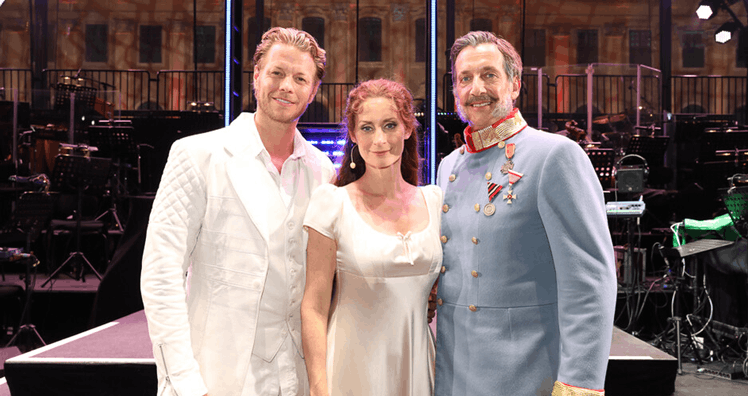 27 Jahre nach der Uraufführung in Wien war das Kultstück des Erfolgsduos Michael Kunze und Sylvester Levayerstmals am Originalschauplatz der Handlung zu hören. Und dafür holten die Vereinigten Bühnen Wien (VBW) nochmals das Liebespaar der Uraufführung 1992 vor den royalen Vorhang: Pia Douwes hat in Wien schon vor fünf Jahren beim "Besuch der alten Dame" die Titelpartie gesungen, gibt jedoch an den beiden projektierten Schönbrunn-Abenden jene Partie, die ihr einst zum Durchbruch verhalf.