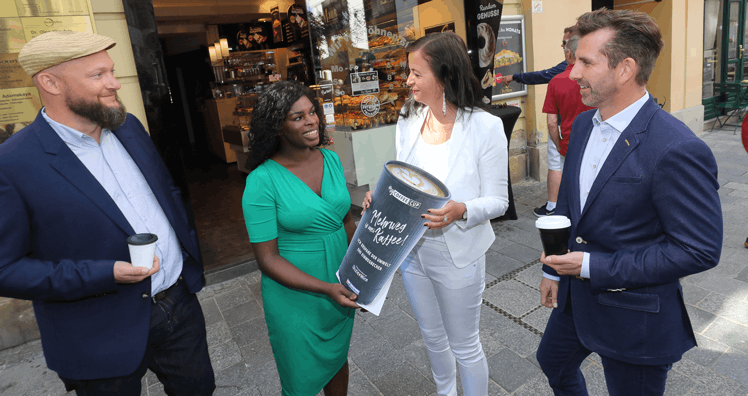 Eine erste erfreuliche Zwischenbilanz in Sachen Mehrwegbecher für den Coffee to go ziehen Umweltstadträtin Ulli Sima und der Geschäftsführer von Cup Solutions, Christian Chytil bei einer "Kaffeetour" zu den Partnern durch die Innere Stadt. Wiens erstes Mehrwegsystem für Coffee to go – Becher wird hervorragend angenommen: Allein in den ersten beiden Monaten wurden 50.000 myCoffeeCups ausgegeben, damit rund eine Tonne Müll vermieden und das Klima entlastet.