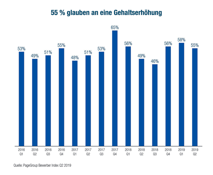 Im zweiten Quartal erwarteten 67 Prozent eine Kompetenzentwicklung, 58 Prozent eine Verbesserung des Aufgabenbereiches und 56 Prozent eine Beförderung. 39 Prozent sind der Meinung, dass sie innerhalb von drei Monaten einen neuen Job finden und an eine Verbesserung der Work-Life-Balance glauben 52 Prozent. "55 Prozent der Befragten rechneten mit einer Gehaltserhöhung, was den Trend der letzten Jahre eindeutig fortsetzt", erklärt Haymerle.