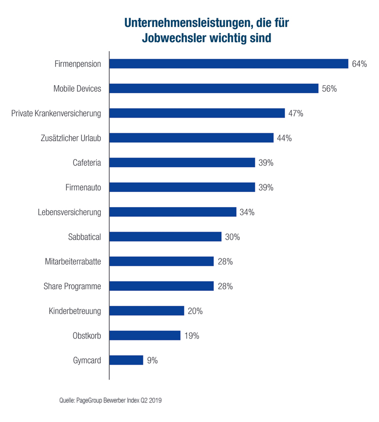 Wichtig ist den Bewerbern bei einem Jobwechsel die Firmenpension (64 Prozent), gefolgt von der Nutzung von Mobile Devices (56 Prozent) sowie eine private Krankenversicherung (47 Prozent). Der bekannte Obstkorb wird nur von 19 Prozent goutiert. Wichtig bei einem Jobwechsel ist die Beziehung zum Arbeitgeber und zu Kollegen (91 Prozent), gefolgt vom Zugang zu Schulungen (84 Prozent) und die Anerkennung der persönlichen Arbeit (84 Prozent). (red)