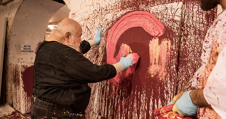 Coverkunstwerk: Herman Nitsch Schüttbild, Acryl auf Leinwand Foto: Atelier Hermann Nitsch