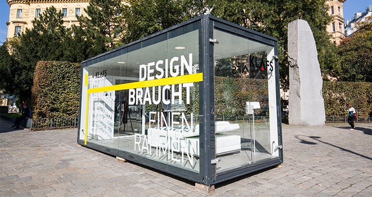 Mobile Showrooms kreieren kunstvolle Tableaus vor der Wiener Innenstadtkulisse – eine moderne Bürolösung vor dem Burgtor, eine Hightech Sanitäroase am Michaelerplatz oder eine Beauty Lounge am Dr. Karl Lueger Platz. Eine Gartenoase im Innenhof des Palais Harrach lädt zum Entspannen, eine Pop Up-Bar beim Golden Quartier zum Genießen ein.