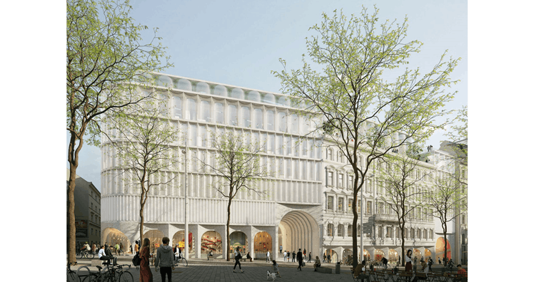 Der Entwurf des niederländischen Architekturbüros OMA (Office for Metropolitan Architecture) rund um Rem Koolhaas setzte sich im Rahmen eines geladenen Wettbewerbs gegen die Konkurrenz durch. Der Sieger aus Rotterdam ist auch an der Renovierung des ebenfalls zur Signa-Gruppe gehörenden "Stammhauses", also dem Berliner KaDeWe ("Kaufhaus des Westens") beteiligt.