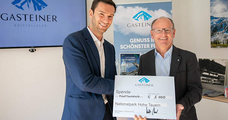 Im Rahmen der Zitronen-Challenge, die das Unternehmen zum Verkaufsstart von Gasteiner Lemon, Grapefruit und Orange initiiert hat sowie im Zuge der go4health-Challenge konnten insgesamt 5.000 Euro gesammelt werden, die dem Bestandsschutz von heimischen Bachforellen im Nationalpark Hohe Tauern zu Gute kommen. Peter Rupitsch, Direktor des Vereins der Freunde des Nationalparks Hohe Tauern, bedankte sich im Zuge des Jubiläums-Events für die jahrelange Zusammenarbeit: "Mit einer Fläche von 1856 km2 ist der Nationalpark Hohe Tauern das größte Schutzgebiet in den europäischen Alpen. Das Engagement von Gasteiner Mineralwasser kommt dem Schutz der unberührten Landschaften und der beeindruckenden Flora und Fauna seit Jahren zu Gute."