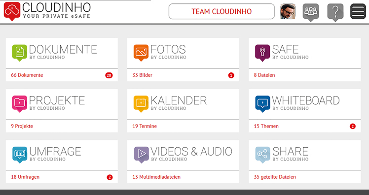 Ob fürs Unternehmen, den Verein, die Schule oder für die Familie – mit wenigen Mausklicks steht Ihnen bei CLOUDINHO eine Cloud-Struktur zur Verfügung, die einen verlässlichen Raum für Daten, Kommunikation und Kooperation schafft. CLOUDINHO verbindet dabei Tools und Features der modernen Cloud-Technologie mit der Privacy- und Datensicherheit österreichischer sowie europäischer Gesetze.