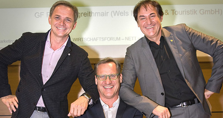 "Der erster Schritt war, dass Bürgermeister, Tourismusobmann, Wirtschaftsstadtrat, die größten Händler und Gastronomiebetriebe und meine Wenigkeit als Citymanager beschlossen, fix an einem Strang zu ziehen. Da darf nichts Unausgesprochenes zwischen die handelnden Personen bleiben, Gutes wie Schlechtes", sagt Jungreithmair. So brachte Wels in den vergangenen drei Jahren mehr als 5,8 Millionen Besucher in die Stadt. Für Staunen sorgte Jungreithmair, als er verriet, dass seine Jahresprämie von den beiden digitalen Frequenzzählern in der Innenstadt bestimmt wird.