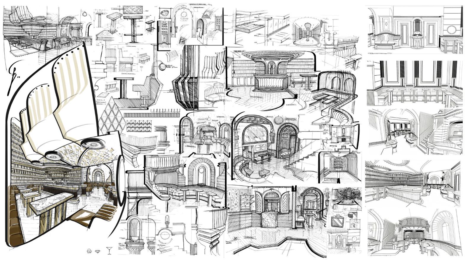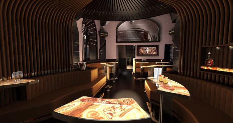 "Gemütlich, atmosphärisch warm und zeitlos soll das Kleinod Prunkstück werden. Die Materialauswahl, bestehend aus Onyx-Marmor, Messing, Echtholz und Leder, ist an das Kleinod in der Singerstrasse angelehnt. Die erleuchteten Marmortische sind das Herzstück – sozusagen die DNA – des Lokals. Für die restliche Einrichtung haben wir eine neue Formensprache gewählt. Besonders spannend ist das Raumkonzept mit den eingezogenen Galerien. Es ermöglicht den Gästen an drei Bars eine jeweils unterschiedliche Stimmung zu erleben: von privat, gemütlich, zurückgezogen über bewegt bis tanzend ist alles möglich", so Schober.