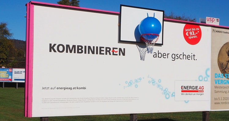 Und auch sonst sprengt die Kampagne die üblichen Erwartungen. Ein Plakat mit echtem Basketball-Korb oder animierte Webbanner halten das Thema am Kochen. Sie sollen vor allem eines zeigen: es muss nicht immer alles perfekt zusammenpassen, damit es Spaß macht. Die Maßnahmen und der Media-Mix für die neue Kampagne der Energie AG Oberösterreich beinhalten Plakate, Citylights, Anzeigen, Radiospots, Web Banner, Landingpage und Online-Maßnahmen. (rb)