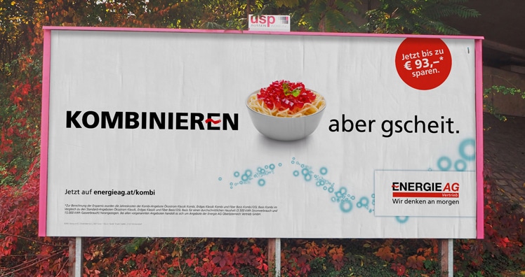 Diese Kombi-Produkte sind Thema der aktuellen Herbstkampagne, weshalb die Linzer Kreativen auf eine auffällige Inszenierung setzen: "Wir wollen mit unserer Kommunikation maximale Awareness schaffen und das Publikum überraschen", so Daniel Frixeder von upart, "dafür haben wir Kombinationen kreiert, die eigentlich unmöglich sind und so schräg, dass sie als eye-catcher hängenbleiben." Wer gscheite Kombis will, wird von der Energie AG bedient, so demnach die zu vermittelnde Botschaft.