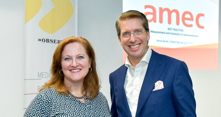 Anlässlich des Measurement Month November und im Hinblick auf den AMEC Summit 2020 lud Observer unter Geschäftsführer Florian Laszlo zum "Measurement Impulse":auf gab die Geschäftsführerin der Association for Measurement and Evaluation of Communications (AMEC) Johna Burke am Montagabend erste Einblicke in die zunehmend wichtige Erfolgsmessung in der Kommunikationsbranche und bereits im Vorfeld des Summits Erfolgstipps und Werkzeuge zur effektiven Kommunikationsevaluierung auf.