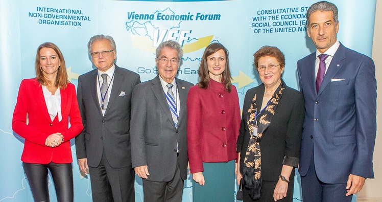 Der Gastgeber und Vorstandsvorsitzender der Novomatic AG, sowie Vizepräsident des Vienna Economic Forum und Honorarkonsul von Rumänien in Niederösterreich, Harald Neumann, sprach in seiner Rede über die wirtschaftliche Zusammenarbeit und betonte, dass sie der Schlüssel zum Erfolg der südosteuropäischen Region ist. Der Präsident des Vienna Economic Forum, Günther Rabensteiner, dankte allen Anwesenden für das zahlreiche Erscheinen. Er erklärte, dass eine politische Brücke leicht zu zerstören ist. Ein starkes wirtschaftliches Netzwerk ist dagegen nicht leicht abzubauen. Das Vienna Economic Forum hat vor, eine wirtschaftliche Brücke zu bauen.
