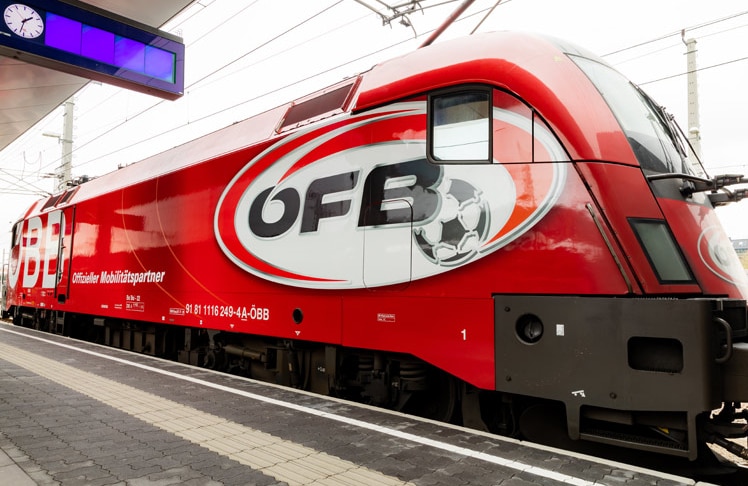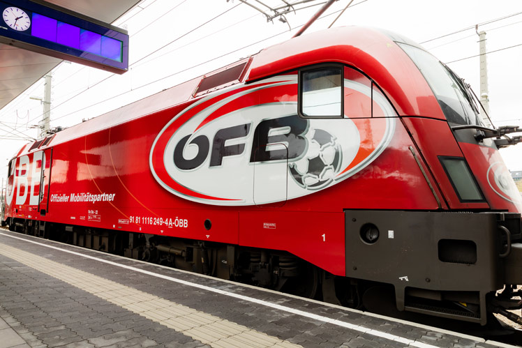 Die ÖBB haben den Kooperations-Vertrag mit dem ÖFB um weitere drei Jahre verlängert und bleiben bis zumindest 31. Dezember 2021 offizieller Mobilitätspartner. Fünf Partner des ÖFB präsentieren sich dabei mit einzelnen Wagonbrandings. Mit großformatigen Beklebungen nutzen die langjährigen Unterstützer den ÖBB Railjet als sichtbaren Imageträger für sich und ihr Engagement im Sportsponsoring.