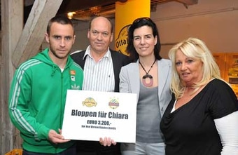 Beim Promi-Bloppen in der Ottakringer Brauerei haben Ottakringer und der SK Rapid 100€ pro Treffer für Chiara gespendet.